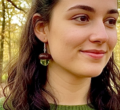 These earrings are the perfect blend of rustic charm and refined sparkle. Lightweight and comfortable for all-day wear, they transition seamlessly from everyday wear to a cozy fall brunch to a festive evening gathering. Available in a spectrum of seasonal colors—from forest Green and striking jewel-tone Blue, Red or Clear crystals, to the classic creamy Pearl. Each piece is a miniature work of wearable art. They are an ideal gift: for the holidays, birthdays, nature lovers, and anyone who cherishes unique, handcrafted jewelry — as well as the person whose sense of humor appreciates this blend of nature with human-made beauty,