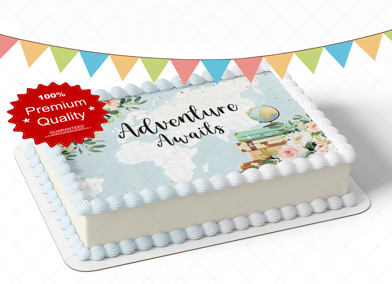 Adventure Awaits Adventure Begins Map Around World Edible Image Themed Edible Birthday Party Cake Topper Sheet Edible Sticker Decal