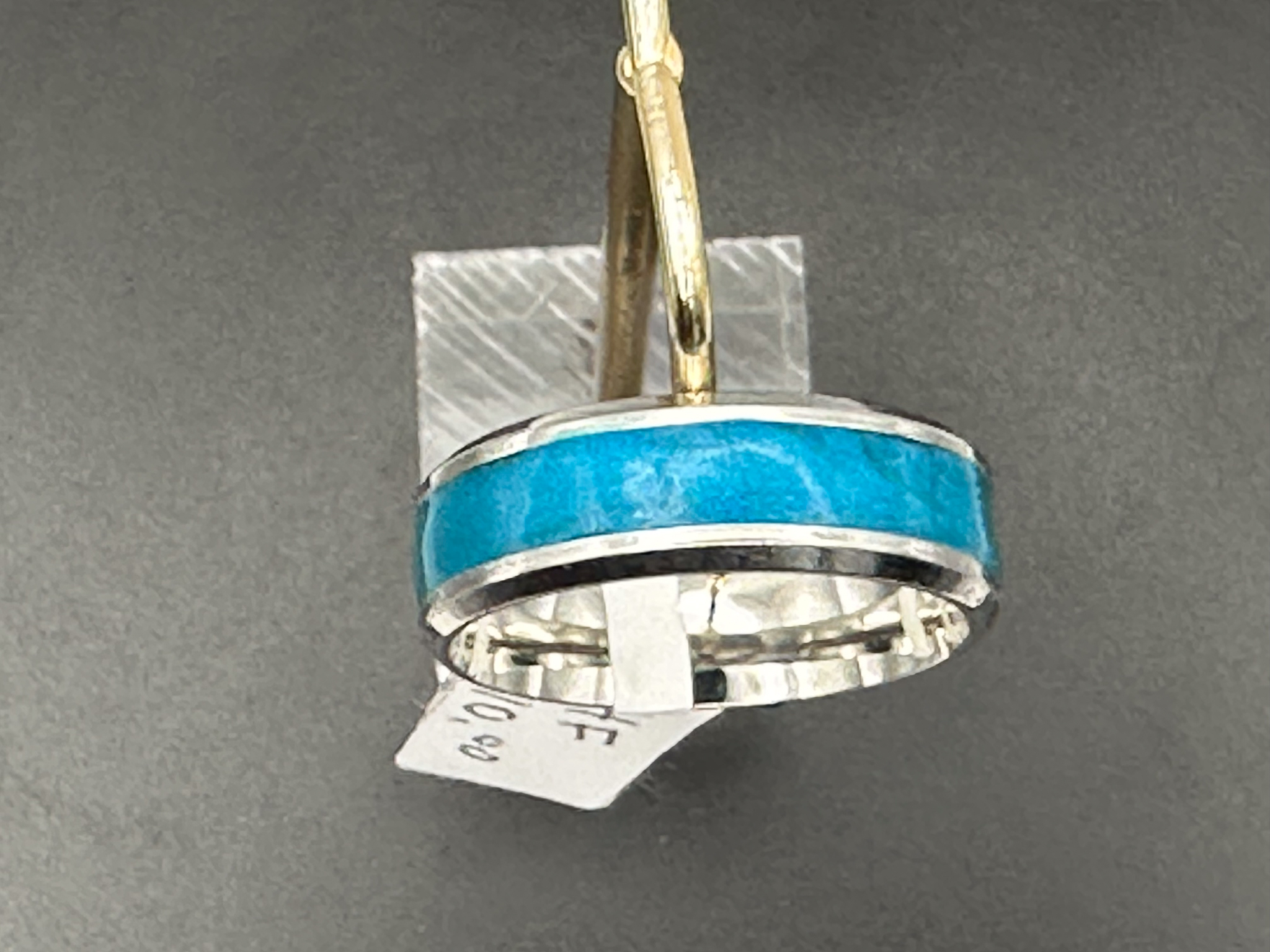 Aegean Tide Band – Ocean Blue Inlay Ring with Silver Trim - Size 8