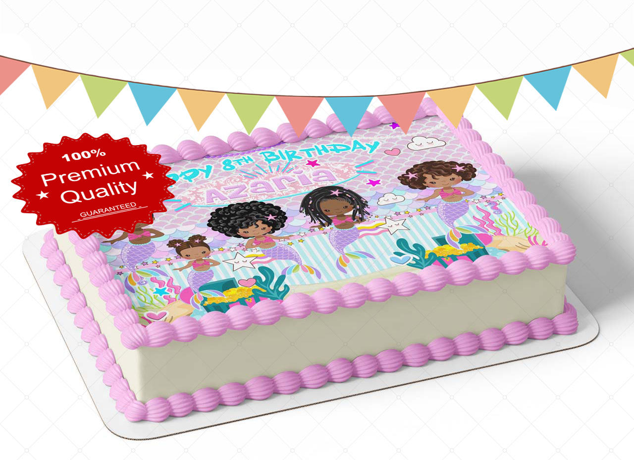 Afro American Mermaid Black Princess Edible Image Themed Edible Birthday Party Cake Topper Sheet Edible Sticker Decal