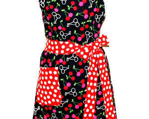Cherry Apron, Red Flirty Ladies With Pocket, Custom Birthday,...
