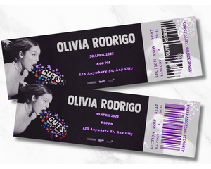 Personalized Olivia Rodrigo souvenir ticket tour, Concert Tic...