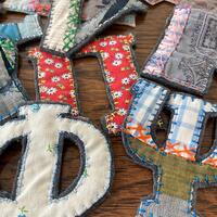 Letters are Hand cut and hand embroidered from vintage quilt tops. Backed with felt. Iron on or sew on.