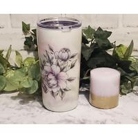 This tumbler features a beautiful pink floral design that is sure to catch the eye and brighten up any day. The shimmering effect on this tumbler sparkles beautifully in the light. The high-quality epoxy ensures that it will last for years to come.