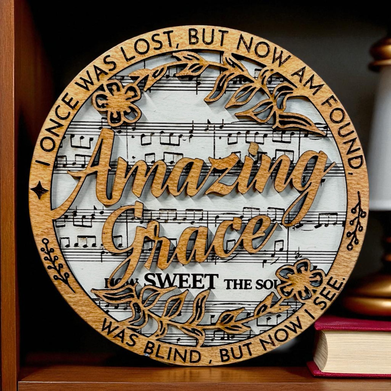 Celebrate timeless faith and inspiration with this beautifully crafted multilayered circular wooden plaque featuring the words of Amazing Grace. Precision laser-cut layers create depth and dimension, highlighting the beloved hymn in an elegant, artistic design. Perfect for displaying on a shelf or hanging on a wall, this piece adds a meaningful touch to any home décor and serves as a gentle reminder of hope and grace.