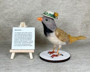 I lovingly handcraft each whimsical little creature, aiming to blend lifelike detail with a playful twist. Imagine them as realistic animals with just a touch of mischief! Most start with a tiny wire armature as their skeleton, which I then carefully wrap in wool, sculpting and shaping them through needle felting until they come to life, with soft, wooly "feathers" to complete the look. The wool I use is sourced from sheep grazing on farms across America, England, and Canada, adding a touch of international flair to each piece. Tiny beaks and hooves are either sculpted from clay and hand-painted or felted from wool, finished with a delicate beeswax coating. While these felted sculptures are crafted with joy and meant to bring smiles, they’re intended for display only—best kept out of the reach of curious little hands and paws.