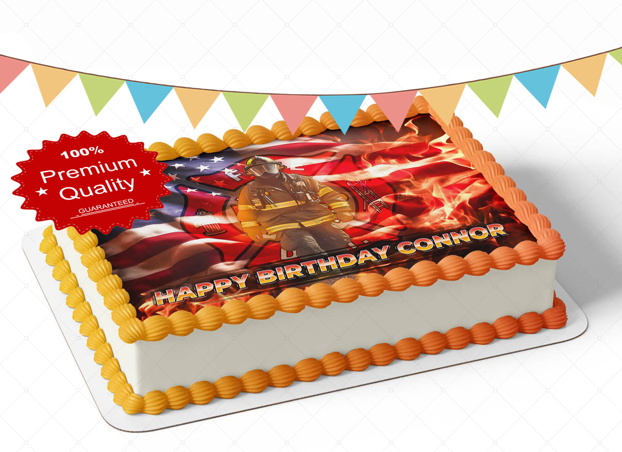 American Firefighter Rescue Edible Image Themed Edible Birthday Party Cake Topper Sheet Edible Sticker Decal
