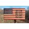 Now the fun part, we stain 13 of the 16 pieces either red, white or blue and let thoroughly dry. Once the stain is dry, we again assemble the flag using our custom clamp, 39 screws and high quality waterproof glue. When we pull the flag from the clamp we finally get to see the beauty we've created in all it's glory...oh but we aren't finished yet. Next we either carve in the union stars by HAND or hand paint them using stencils. To finish off the art piece we apply 2-3 coats of indoor/outdoor glossy spar urethane which provides UV protection for years to come. Last but not least, we install two "D" hooks and wire so your flag will be ready to hang as soon as it arrives.