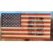 Wooden American flag with veteran art burned into the wood and a painted on fifty star union. It measures 21" x 11" and has a glossy finish. Hanging hardware has been installed.
