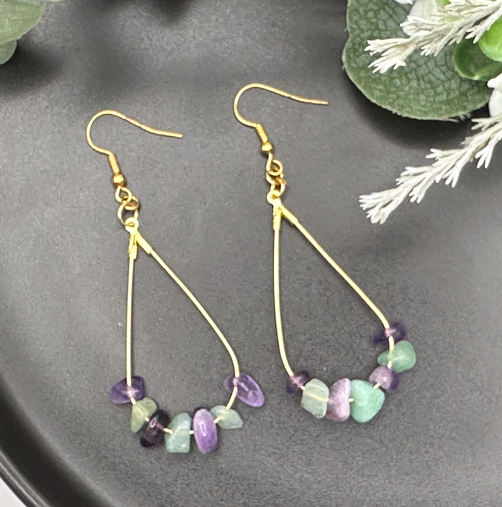 Add a touch of elegance to your look with these stunning amethyst and Amazonite drop earrings! Each pair features natural gemstones that shimmer beautifully in the light, making them the perfect accessory for any occasion.