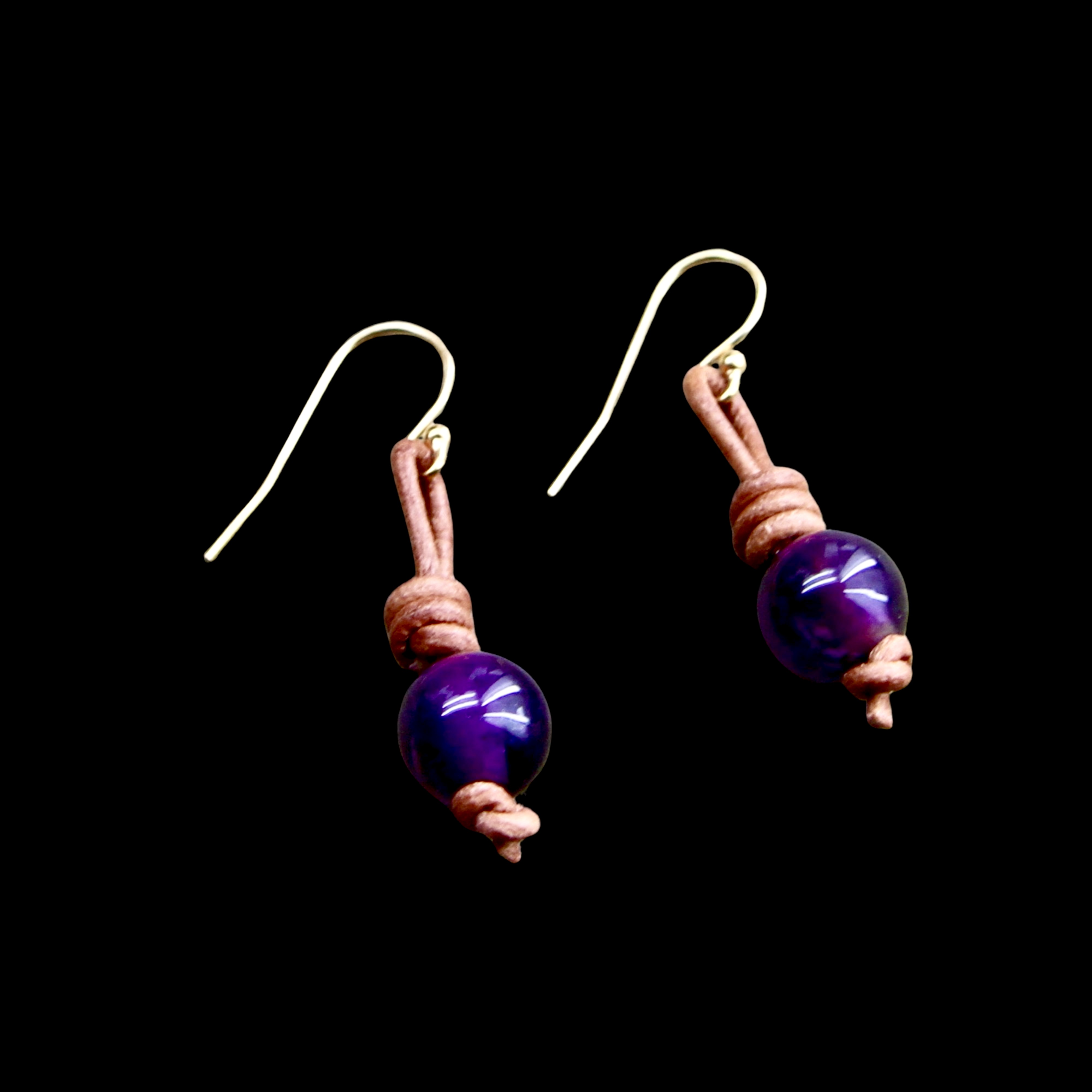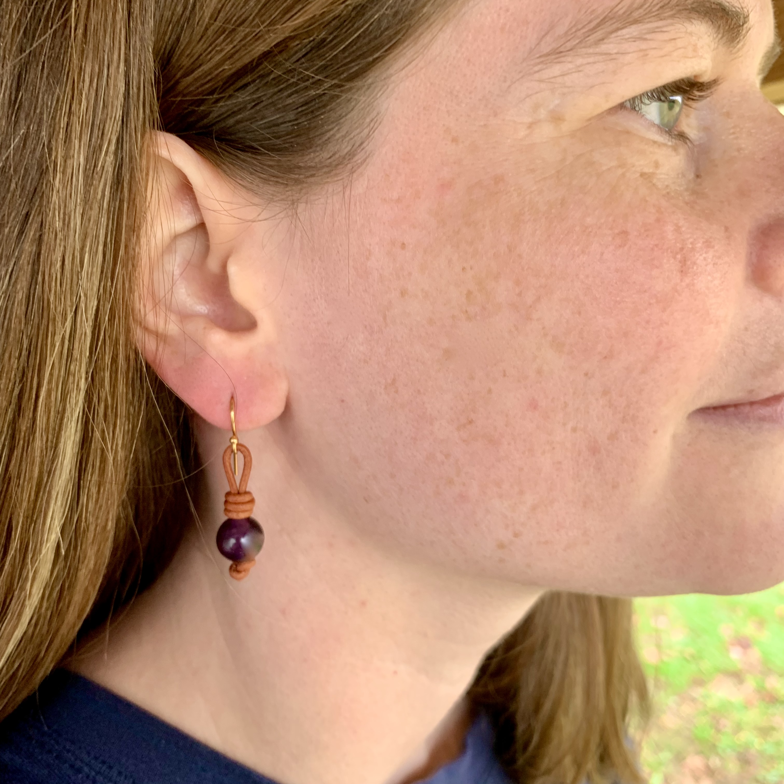 I match two gemstones from my gorgeous supply of stones. I then take my natural soft leather cord and hand tie the special knots, add the gemstones and finish the earrings with high quality gold plated solid 925 sterling silver ear wires. They make a marvelous addition to any earring collection!
