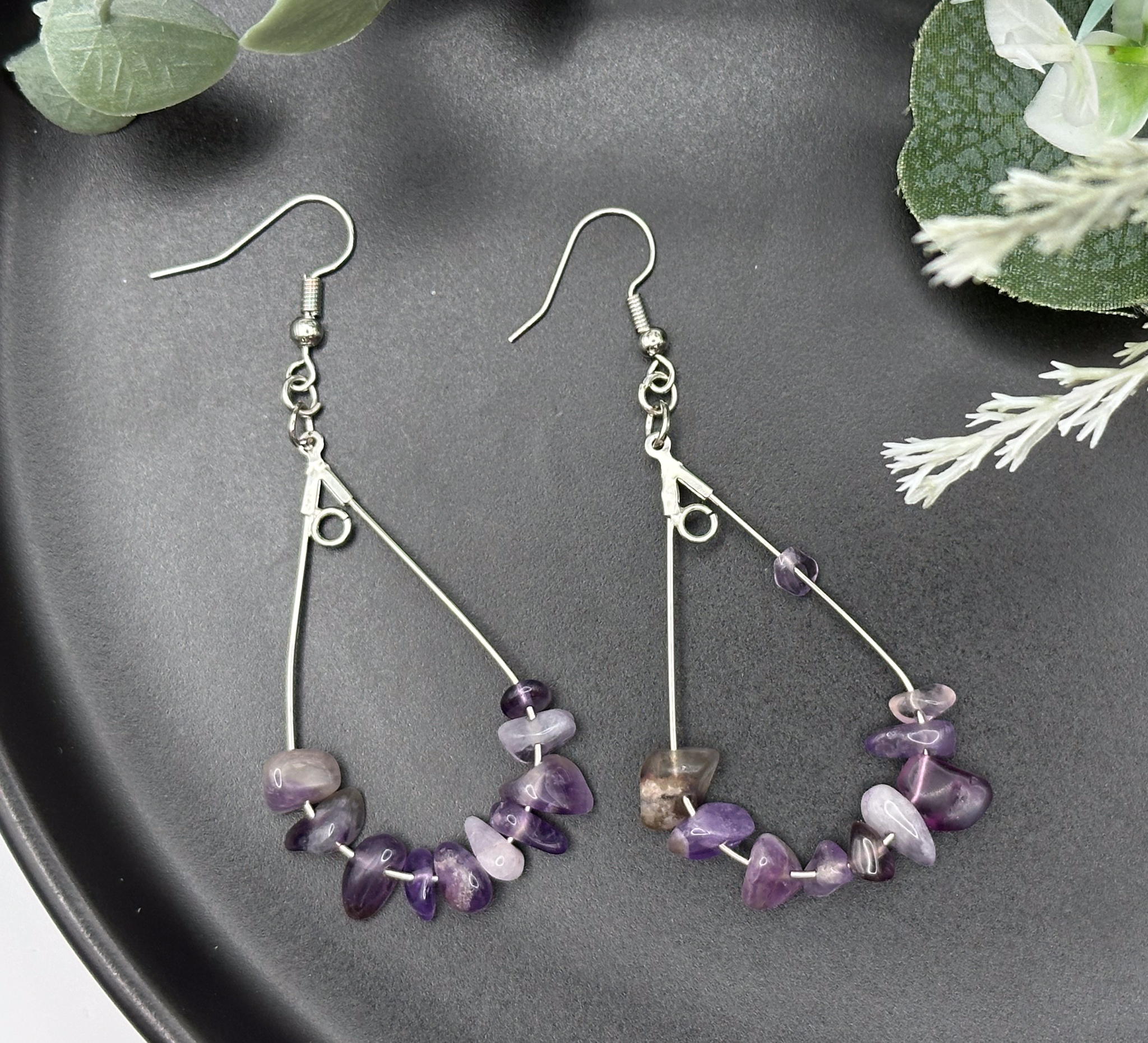 Add a touch of elegance to your look with these stunning amethyst drop earrings! Each pair features natural gemstones that shimmer beautifully in the light, making them the perfect accessory for any occasion.
