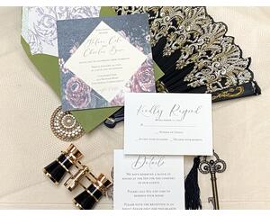 HAVE A QUESTION - Text us at 323-613-1081Welcome to Amira Design – we have been in business since 2009 offering one of a kind experience to our clients. We are passionate about what we do, we only select the highest quality of paper, fabrics and embellishments when designing your invitation. Your wedding is as unique as you are, and we at Amira Design feel that your invitation to the big day should match your unique style. We design, print and hand assemble your invitations in our California studio.We truly believe that every event deserves a spectacular introduction! All our wedding invitation designs can be personalized to suit your big day.Our Minimum order requirement is 25 invitation suites.If you love our styles but cannot find exactly what you are looking for, please contact us, we would love to work with you to come up with an invitation that match your unique style and design preference. Please contact us about our current turnaround timeRush OrdersIf your have a rush order, please contact me before placing your order, to ensure that we can process your order so that you can have it when you need it. There is a fee for the rush order please make sure you check with me for the fee amountFor new and exciting designs, please visit our new website www.amiradesign.netSubscribe to our website and get 10% off your first order. www.amiradesign.net