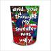 Amputee Sock, 3PLY Stump Sock, "and you thought my sweater was ugly V1 " Christmas ShrinkerSock. This Custom Amputee Sock Design is a wonderful way to accessorize for the Christmas Season. This Amputee Stump Sock can be worn on the Residual Limb or Over Your Shrinker. Grab this Christmas sock and make a Holiday impact. Amputee humor and funny amputee gifts are a great way to celebrate the holiday season as an amputee or amputee family member, friend or coworker.