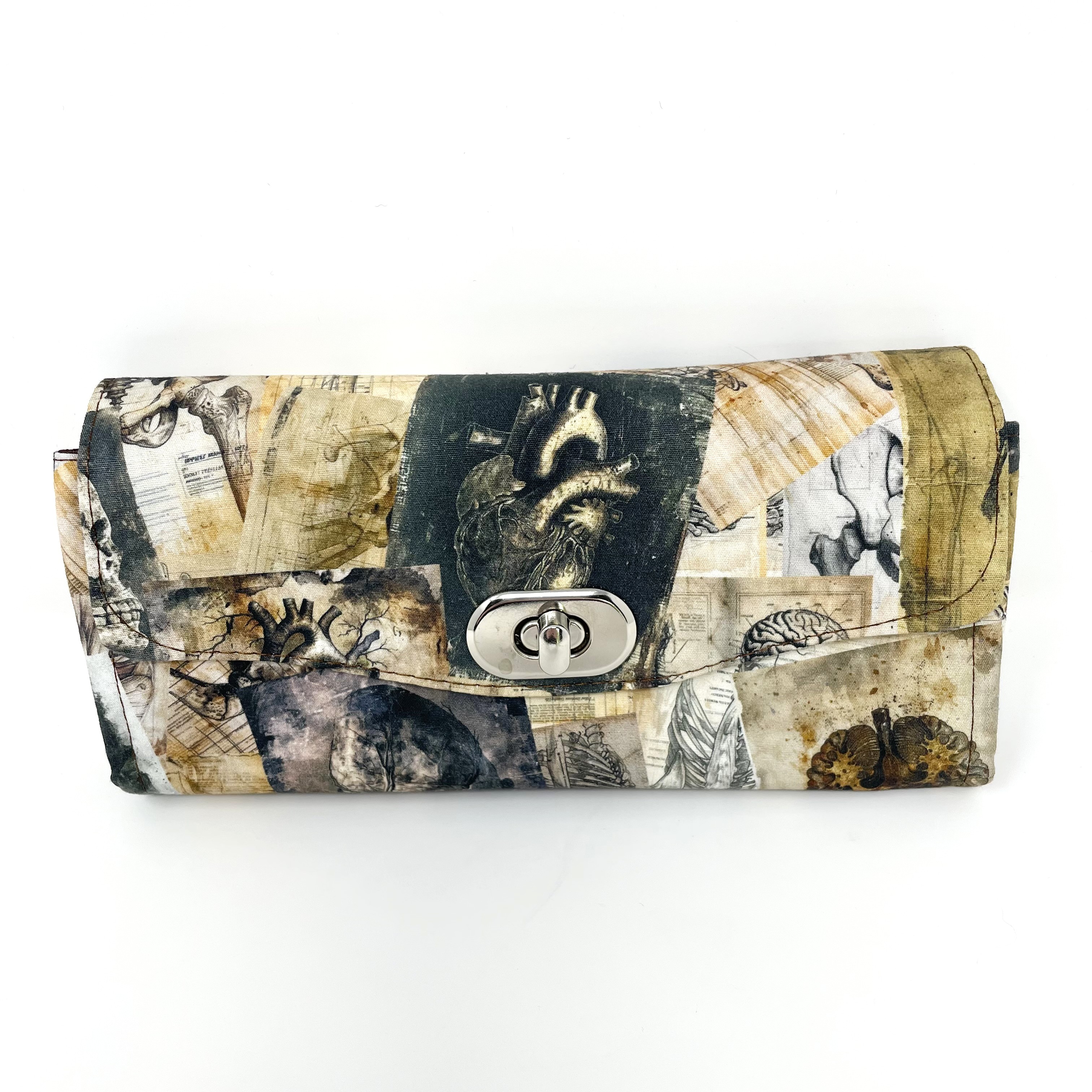 Anatomy Mortuary Death Crypt Cemetery Skeleton Handmade | Accordion Wallet | Organizer | Clutch | |Holds Cell Phone | Ready To Ship