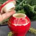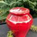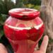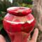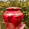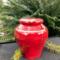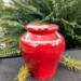 This Urn in Ruby Red with Gold is 40 Cubic inches in volume, and is about 6 inches tall by 4 inches wide at the widest point.