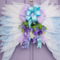 Welcome guests with grace and serenity using this handcrafted angel wing wreath. Designed with layered white and soft blue mesh, the flowing wings create a peaceful, airy look that feels both elegant and comforting. A beautifully coordinated bow in lavender gingham and satin blue sits at the center, accented with delicate purple and white florals and fresh greenery.