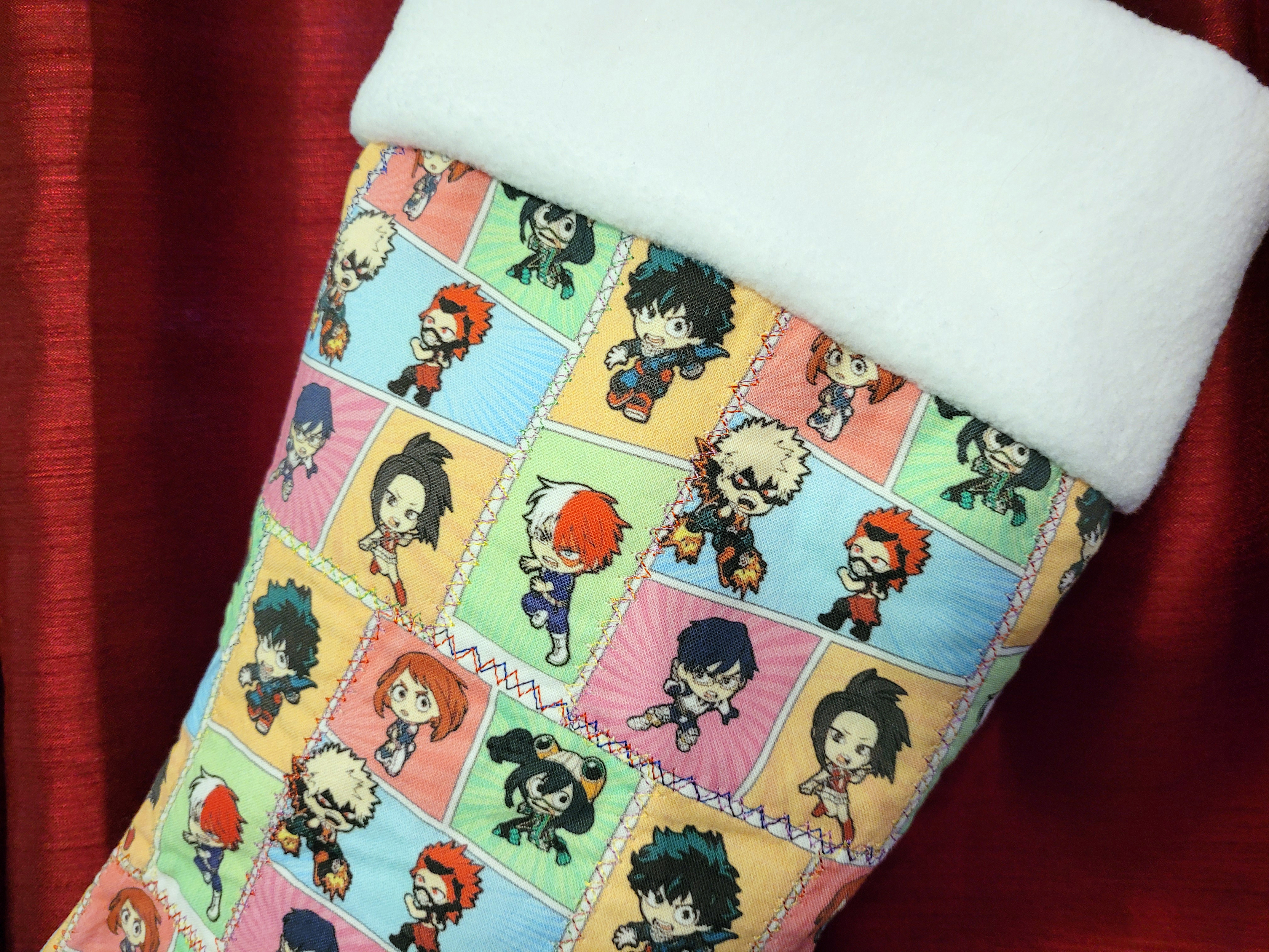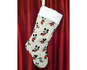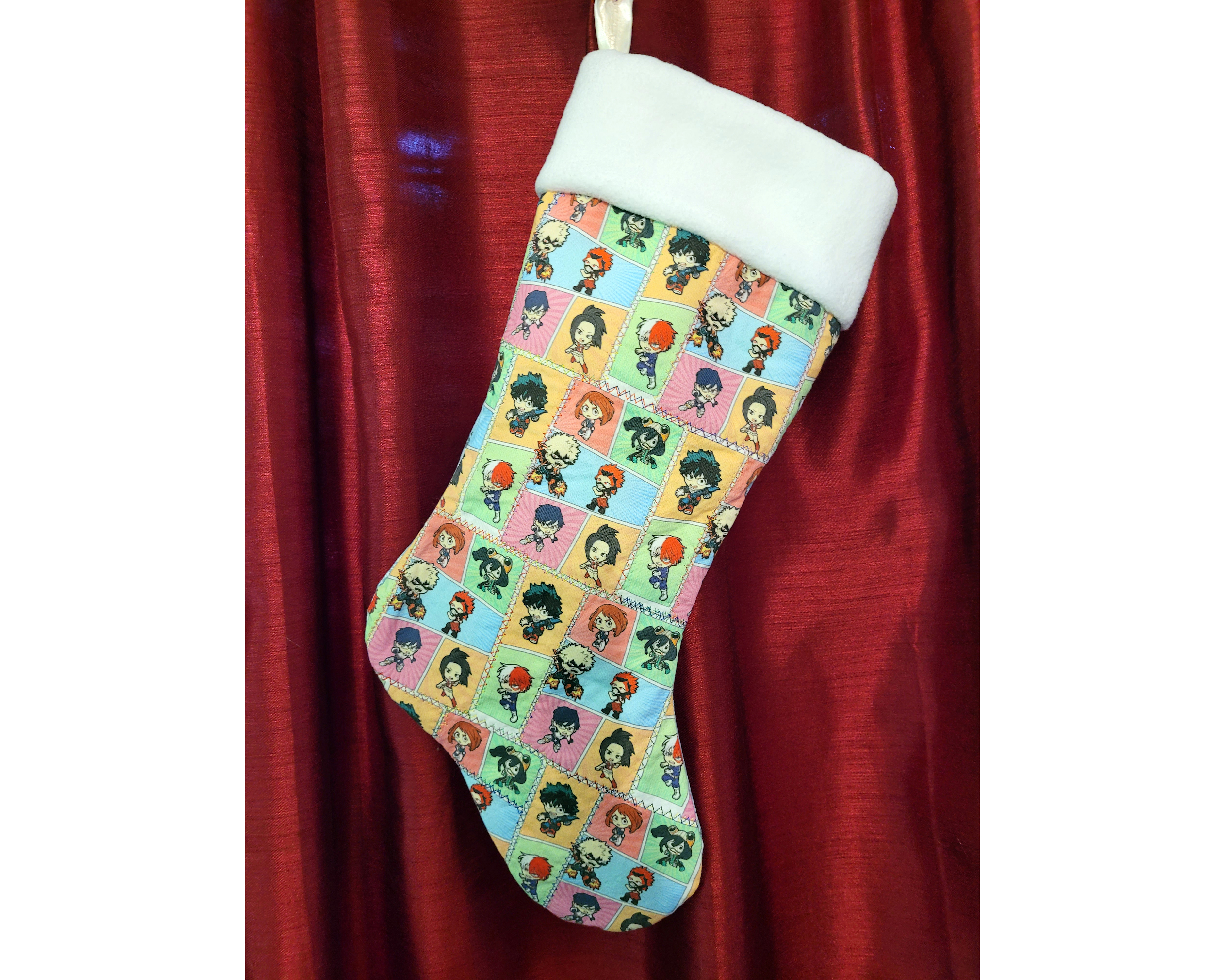 Fan-made fabric is the front of this Christmas stocking featuring class 1-A students. Approximately 17.5" high and 7" wide at the opening.