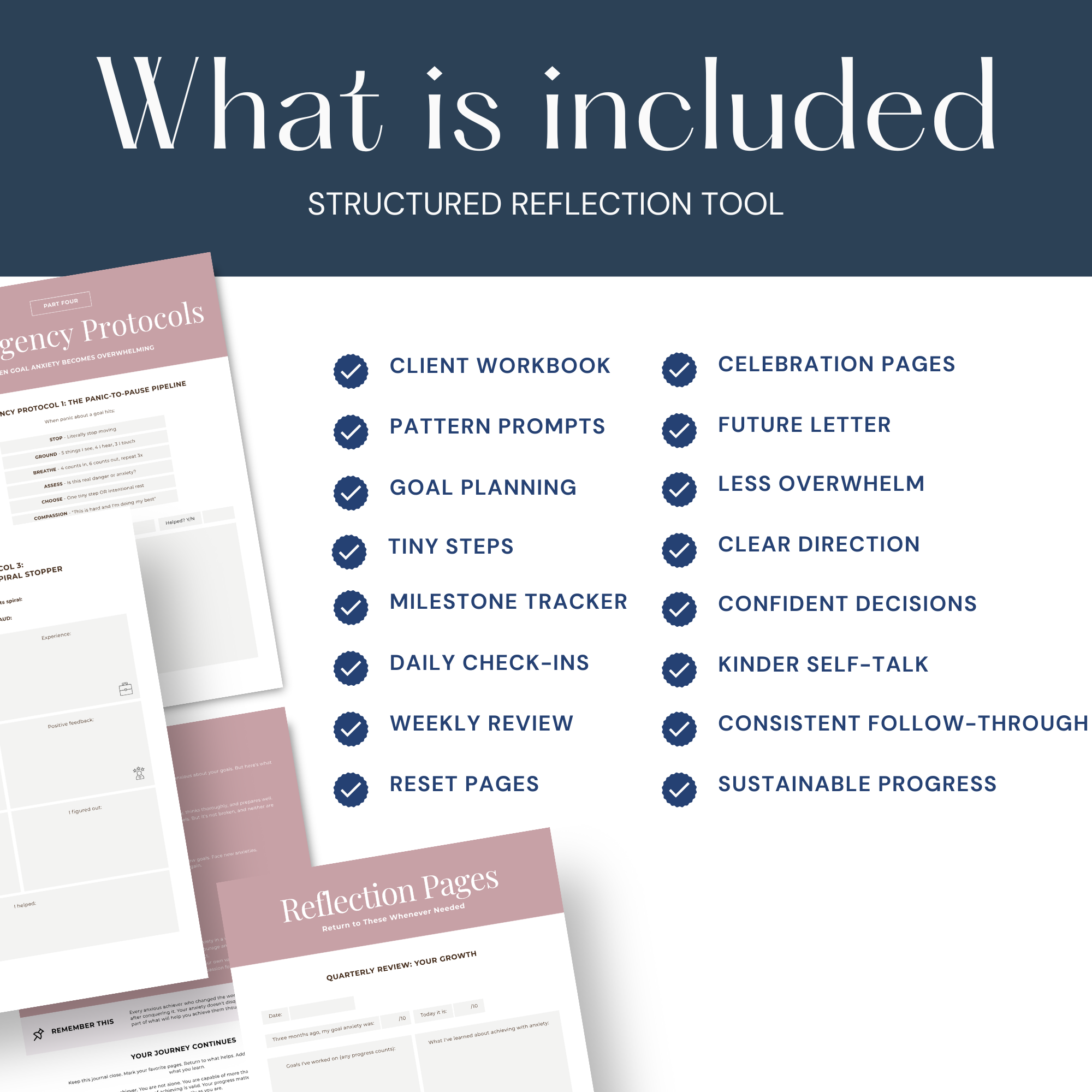 Instead of pushing clients to “power through,” it offers guided prompts that help them pursue goals in a sustainable, anxiety-aware way. Use it in sessions, as homework, or as a structured reflection tool.