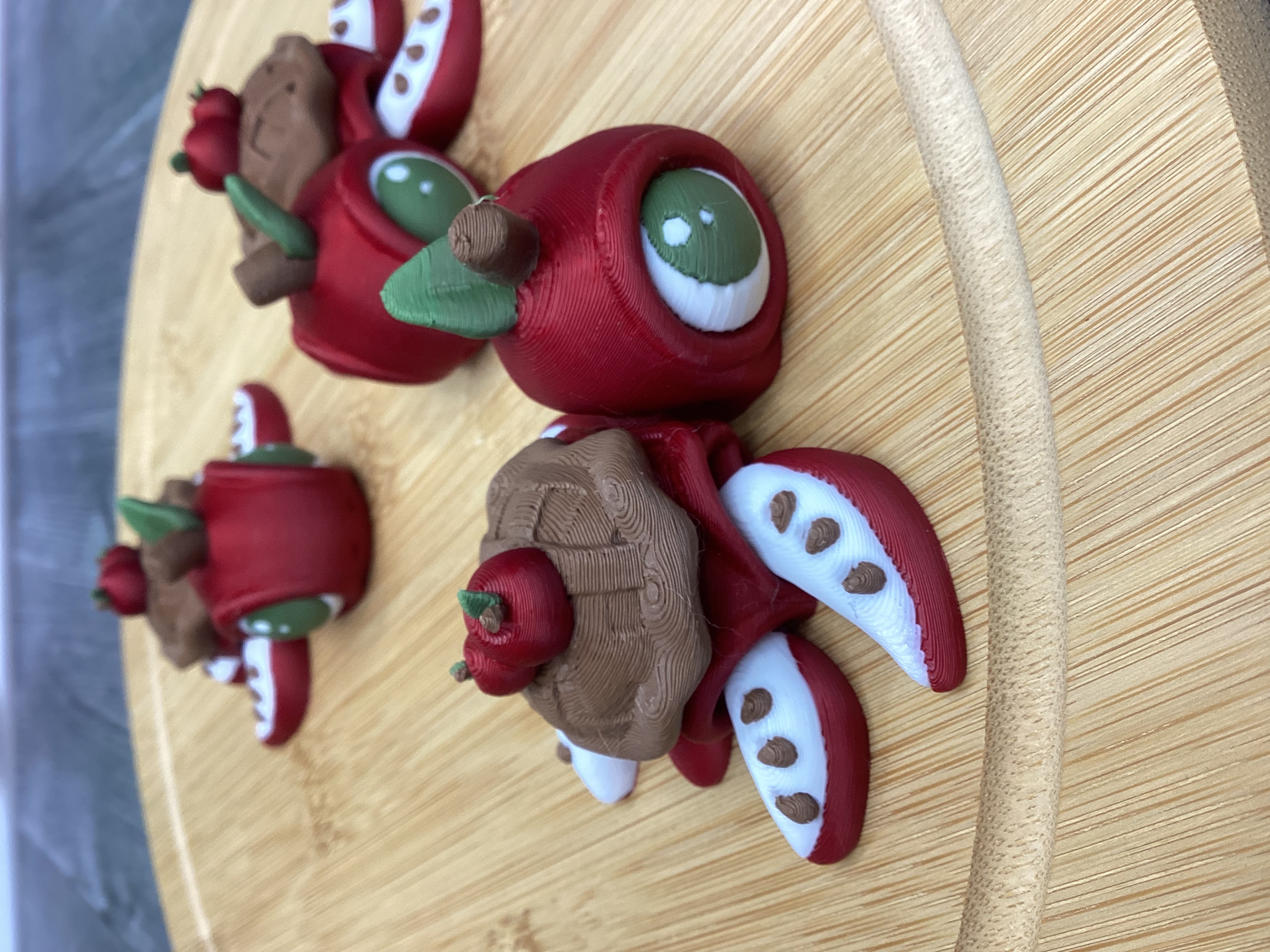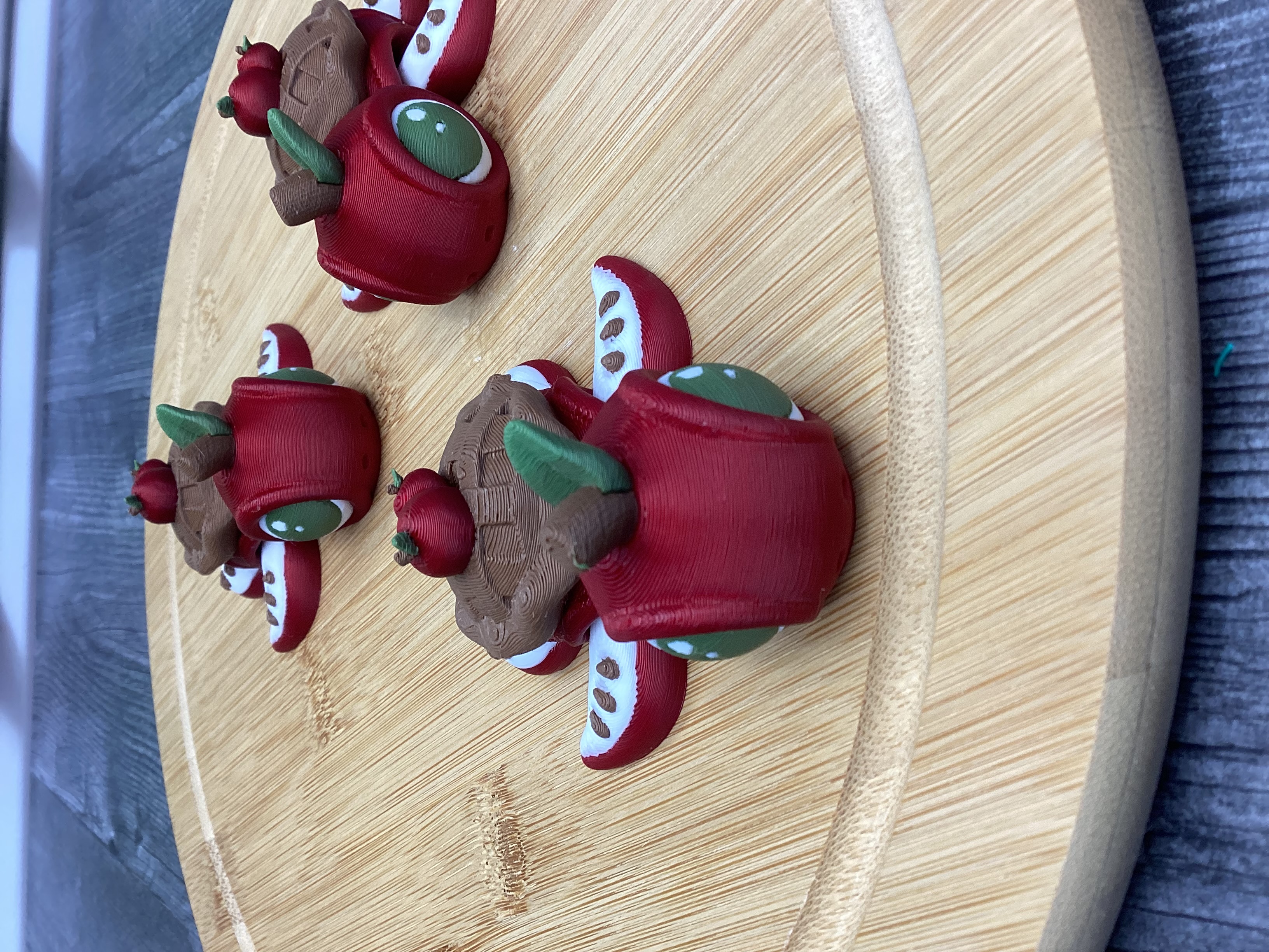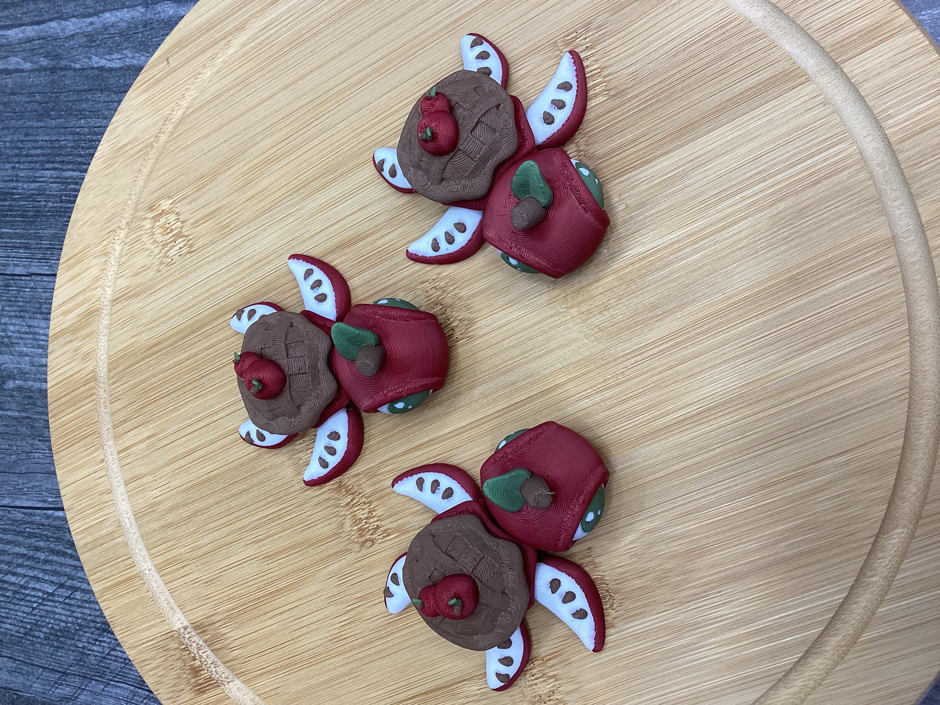 Crafted from durable PLA material, each turtle is lightweight, poseable, and satisfying to wiggle or display. Due to the 3D printing process, slight color variations may occur, making every Apple Pie Turtle one-of-a-kind.