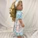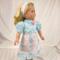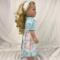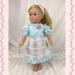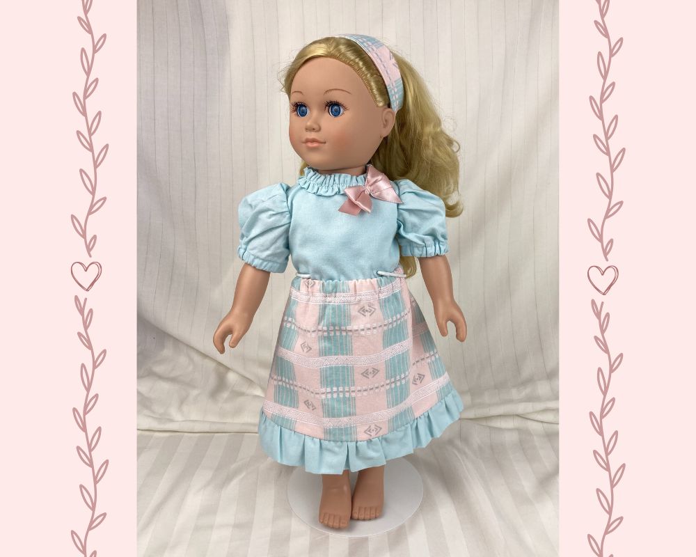 Let your doll step into spring in this delightful aqua and pink concoction!