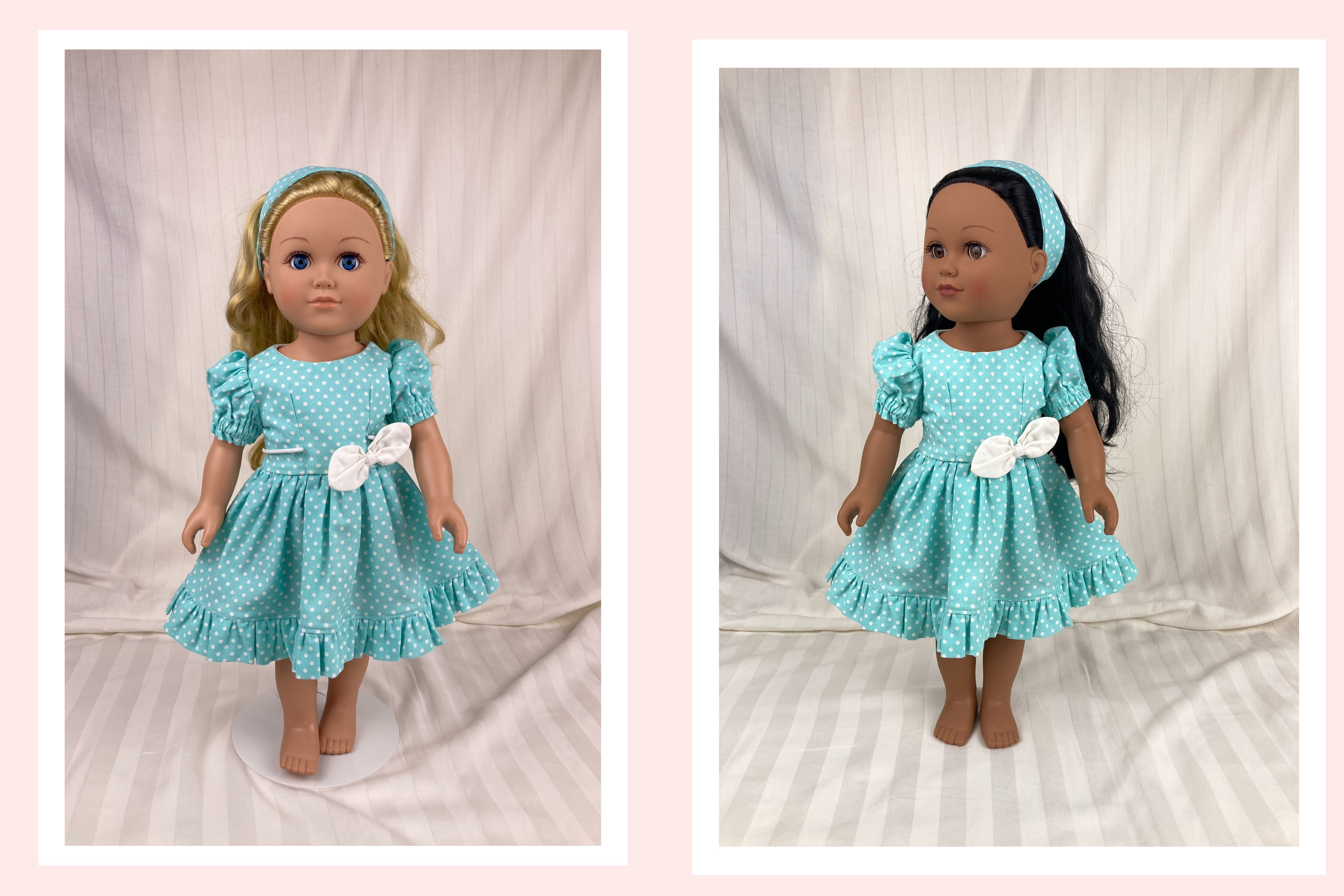 All our doll dresses are handmade by us using quality materials, and old fashioned industry, labor, skill and a passionate vision! ALL our 18 doll clothes have lined bodices unless specified and ALL our 18 doll clothes have finished seams either by multiple zigzagging or by enclosure; depending on the fabric and dress style, the skirts of our doll dresses are also often lined or have an attached petticoat (see individual listings). We strive to create 18 inch doll clothes that are realistic and cute/beautiful- clothes that last longer than fast fashion- clothes that maybe can even be handed down to future generations. A Yankee Doodle Darlings 18 inch doll dress is designed to fit well yet be easy to put on and take off. We try to sewn on all the little details such as buttons, beads, and trims for durability but at times must use a durable glue (see individual listings). Closures are hook and loop unless otherwise stated in listing.