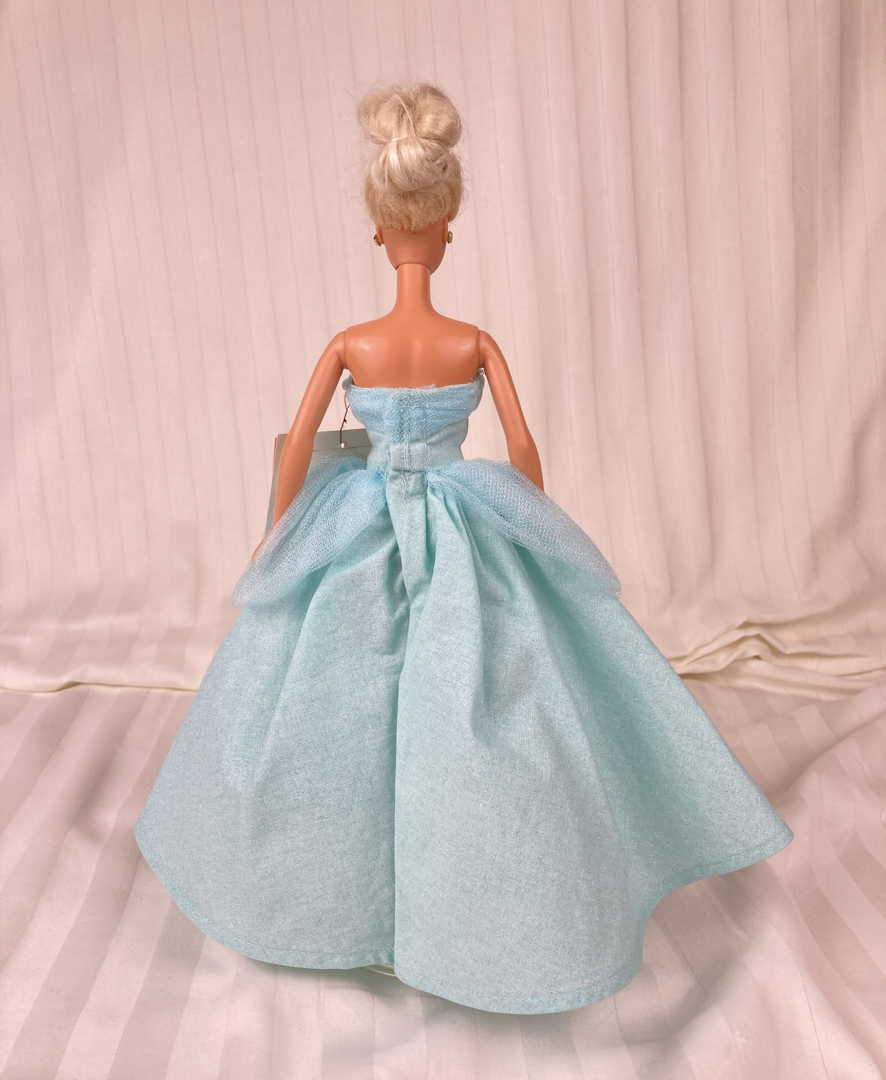All our dresses are handmade by us using quality materials, and old fashioned industry, labor, and skill. ALL our fashion doll clothes have lined bodices unless specified and ALL our fashion doll clothes have finished seams either by multiple zigzagging or by enclosure; depending on the fabric and dress style, the skirts of our doll dresses are also often lined or have an attached petticoat (see individual listings). We strive to create fashion doll clothes that are so realistic and beautiful that our customers wish they themselves could wear the dress and yet durable enough that they become a family heirloom handed down to future generations. A Yankee Doodle Darlings fashion doll dress is designed to fit like a glove yet be easy to put on and take off. We try to sewn on all the little details such as buttons, beads, and trims for durability but at times must use a durable glue (see individual listings).