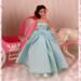 Truly a dress of Cinderella proportions, this aqua blue ballgown is the perfect dress to fulfil your wildest princess dreams!