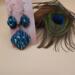 Diamond shaped aqua pendant with black, silver and lavender accents