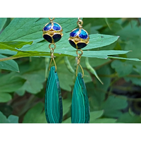 Aqua terra jasper and hammered brass paddles swing from brass hoops. 24K handcrafted ear hooks.