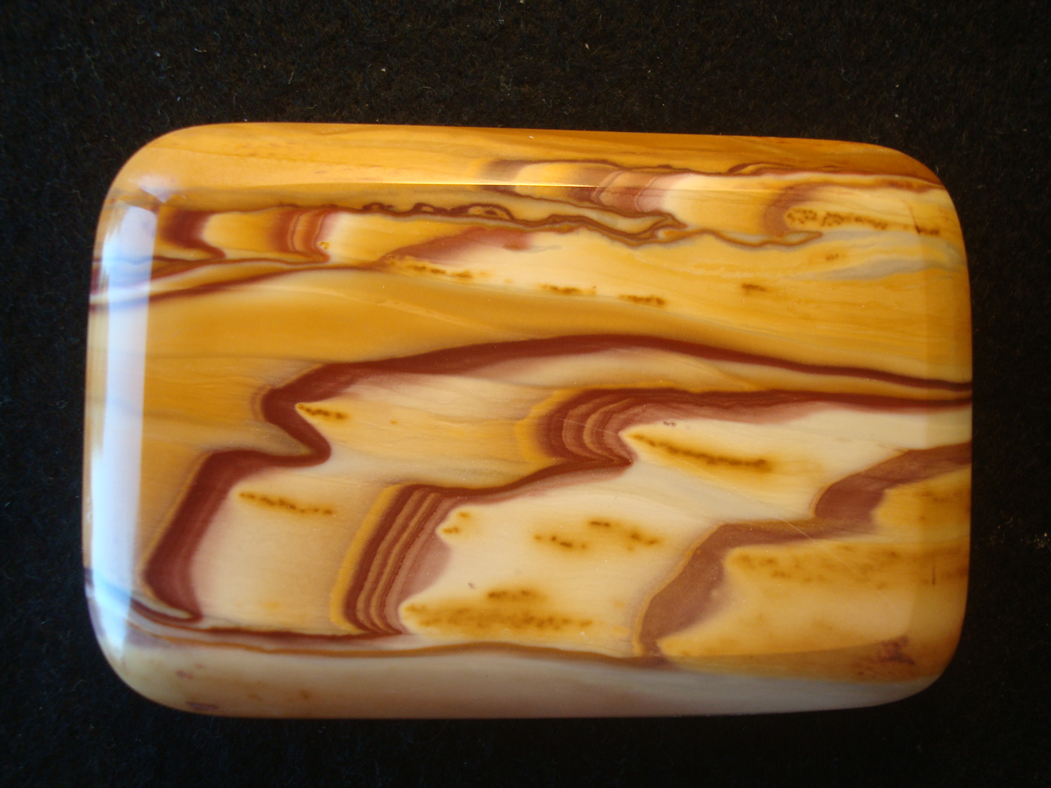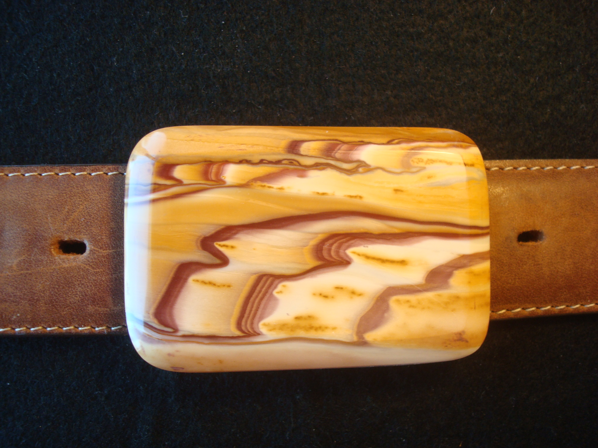 This buckle measures 2" by 3" and is a quarter inch in thickness. I have fashioned this piece in my beveled edge design and the stone is supported with my custom made German Silver backing. The backing is signed and dated along with the gemstones name and this buckle will fit a belt up to 1 1/2 inches in width. Note, German Silver is not silver but an alloy comprised of nickle,brass and zinc. The reasons I use it is that it's less expensive, it's much stronger and it does not tarnish as does silver.