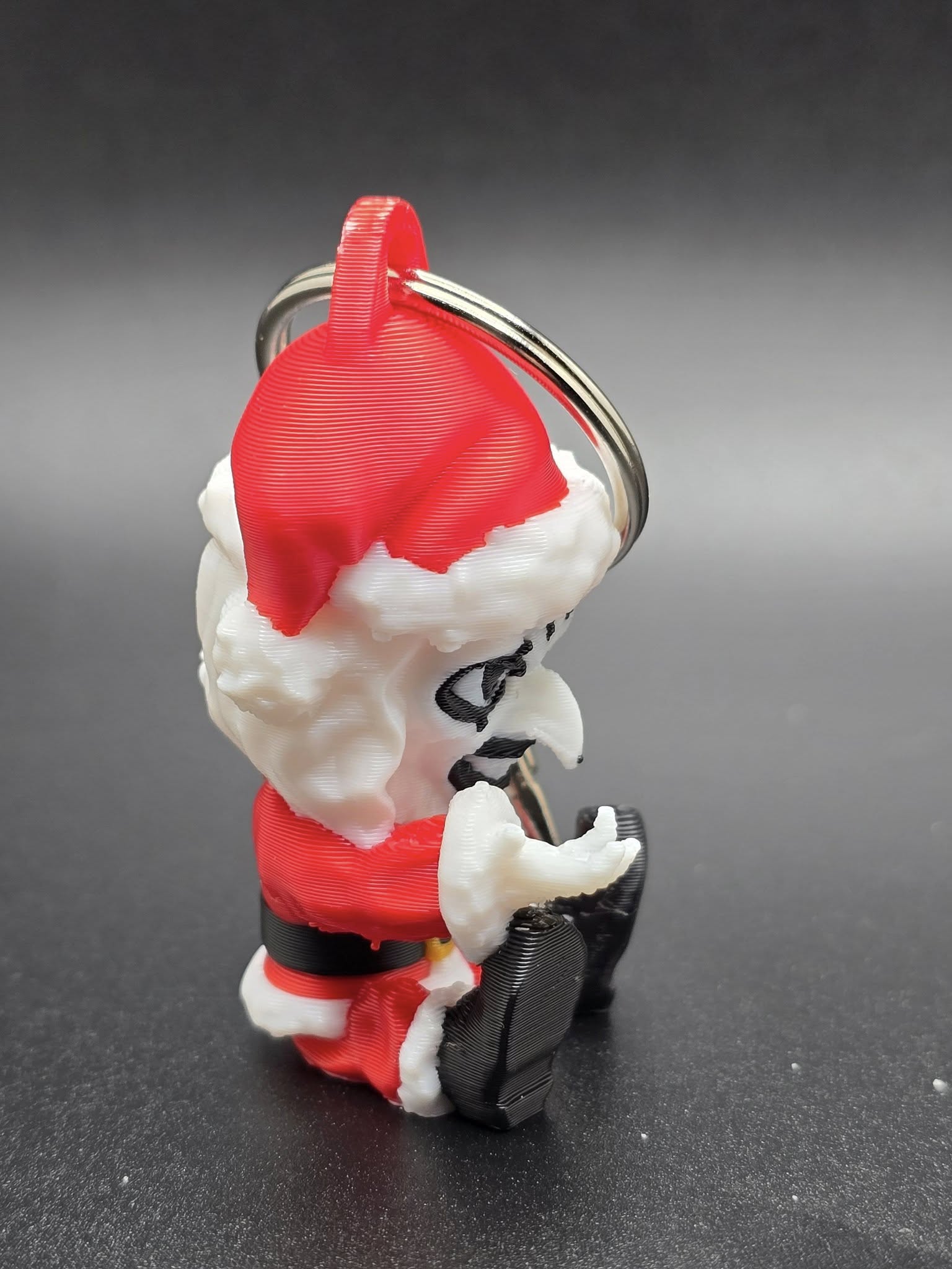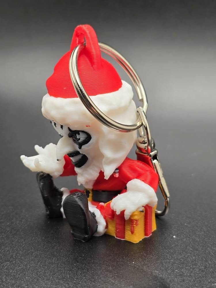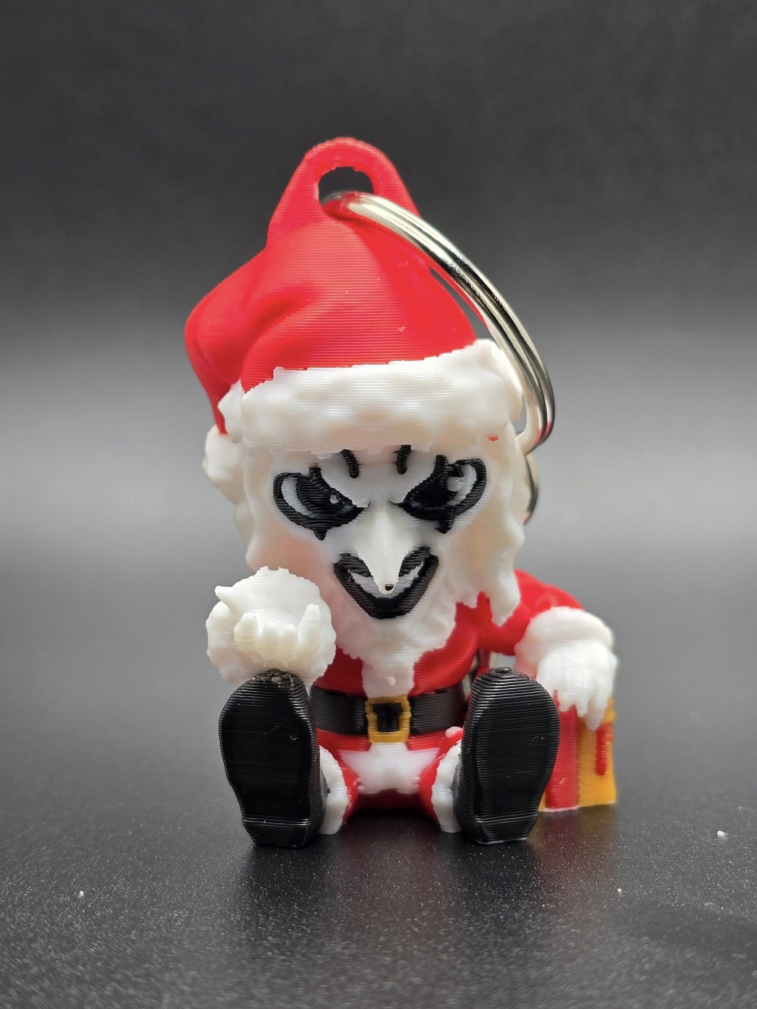 Here we have a Art the Clown in Santa suit key chain. They are 2 inches tall and comes with key chain hardware. These are 3d printed with PLA filament.