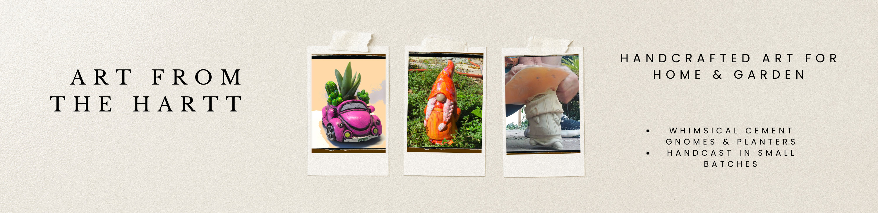 Welcome to Art from the Hartt. I will be updating soon with more whimsical cement gnomes and succulent planters.