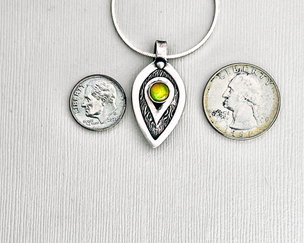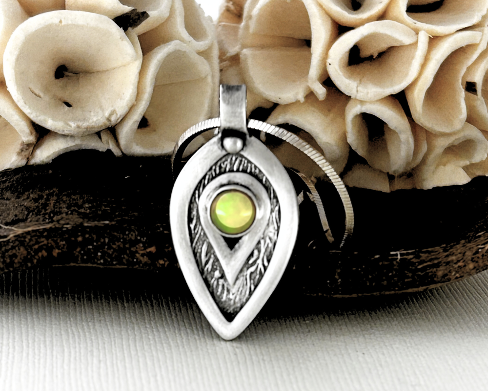 This artisan-made sterling silver pendant is handcrafted with Sterling Silver and an Ethiopian opal.