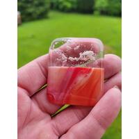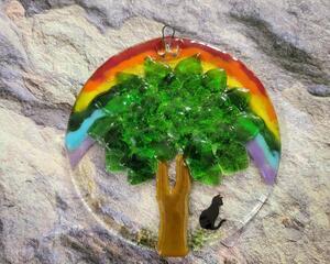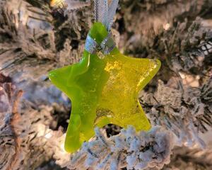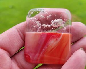 The ornament is made from glass and your pets ashes are fused in the layers.