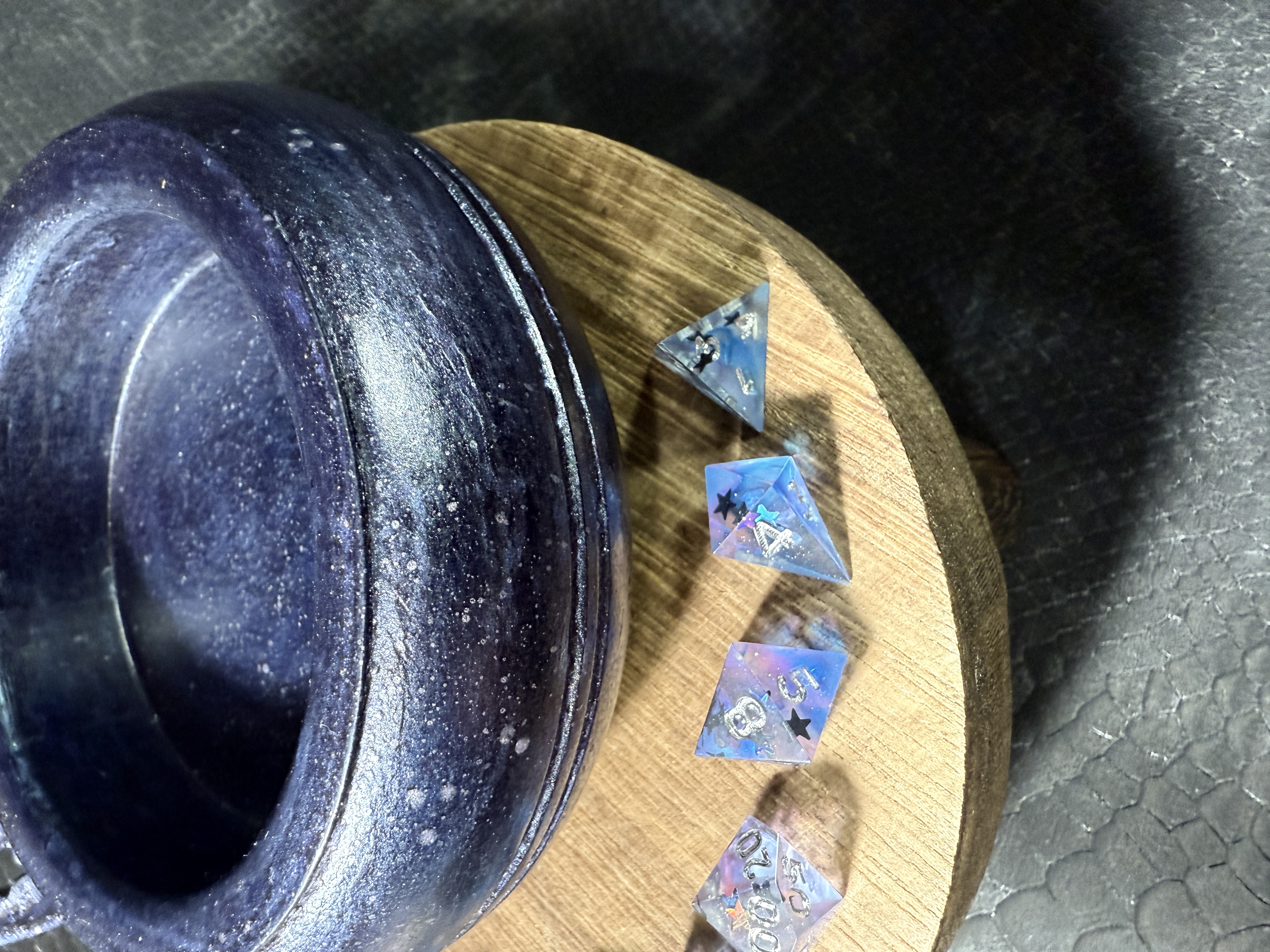With backgrounds in fine art and a shared love of RPG games, my mom, sister and I channel our passion and creativity into every piece we craft. Our fine art degrees have honed our skills and attention to detail, allowing us to create unique, handcrafted items that stand out. From one-of-a-kind hand-poured resin dice and bespoke magic items made from thrifted objects to versatile potion bottles and meticulously sculpted Dice Guardians, we pour our hearts into every creation. Each piece at Potion Dice Emporium reflects our dedication to quality and artistry, as we strive to bring a touch of fantasy and wonder to fellow adventurers.
