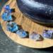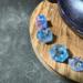 All of my dice are crafted from resin. I hand-pour the resin and add various alcohol inks and mica powders to create beautiful effects. My shell-type dice may include inclusions such as paper butterflies, moss, flowers, etc., and some have the inner shell wrapped in Washi tape. These dice are made using a double casting method (which requires two separate rounds in a pressure pot for 24 hours each): first, the inner dice are cast and a pattern or inclusion is applied, then a second casting of clear resin is done around the insert. The dice are then placed in a pressure pot for 24 hours to remove any bubbles. After curing for a few days, I sand off the excess resin. The dice are then polished in a tumbler with a polishing compound to give them a shine. They are cleaned with soap and water, and then prepared for inking. I hand ink each die, usually in a complementary color, using acrylic inks. Finally, they are polished by hand one last time.