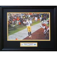 Framed in durable handmade real wood moulding from the species Oak. Matted in Cresent Select mat with logo cut directly into mat and nameplate detailing the event. Permanently mounted to Bainbridge foam core so the print will never wrinkle or bubble up, even in the most severe environments. Encased in Tru Vue UV protected acrylic glass to ensure clarity and intact shipping. Heavy duty AMS picture hangers and 150 pound braided steel wire hanger. Complimentary artwork hanger with every piece for effortless installation.