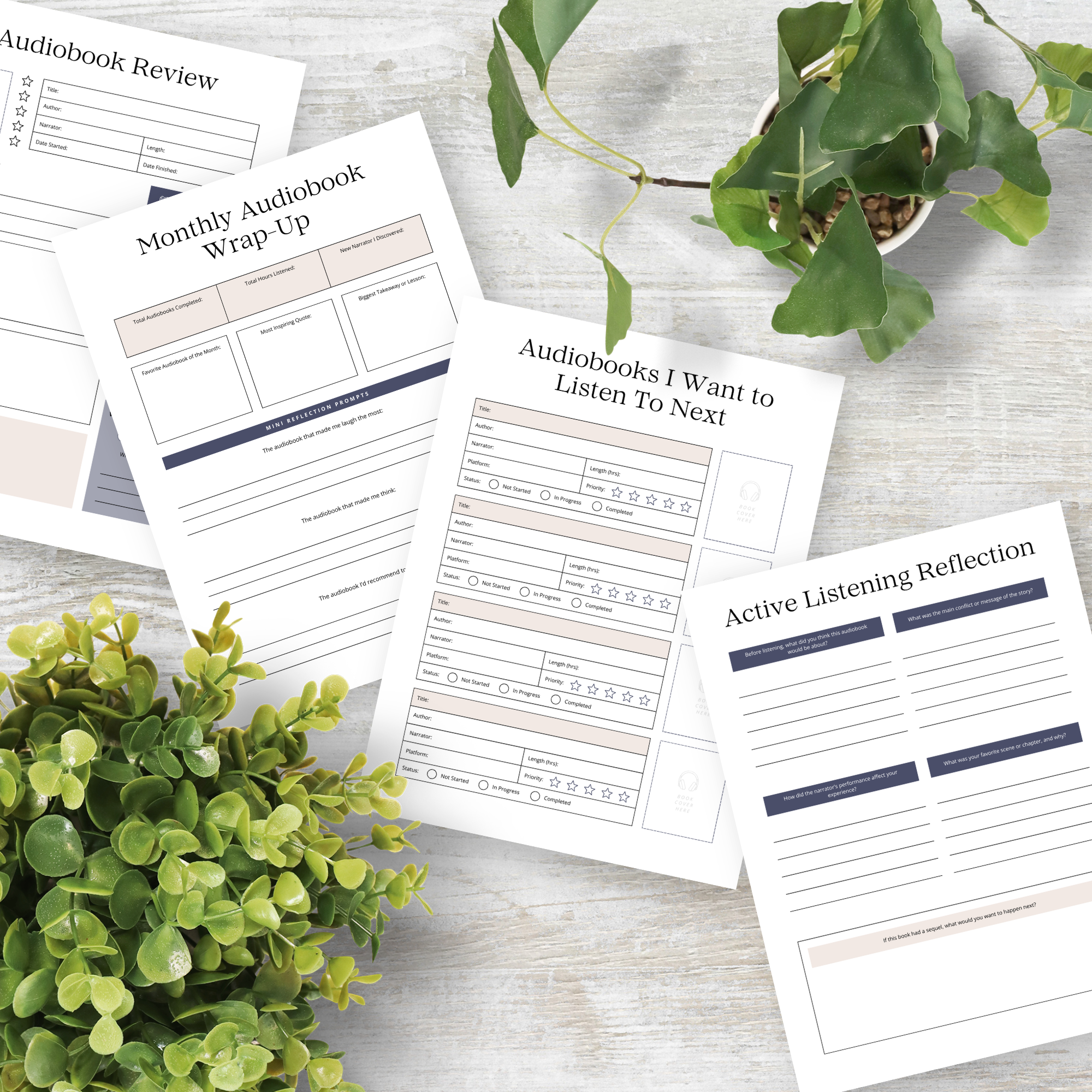 Includes reading log sheets, audiobook journal pages, monthly wrap-ups, and reflection prompts—perfect for turning ideas into action.