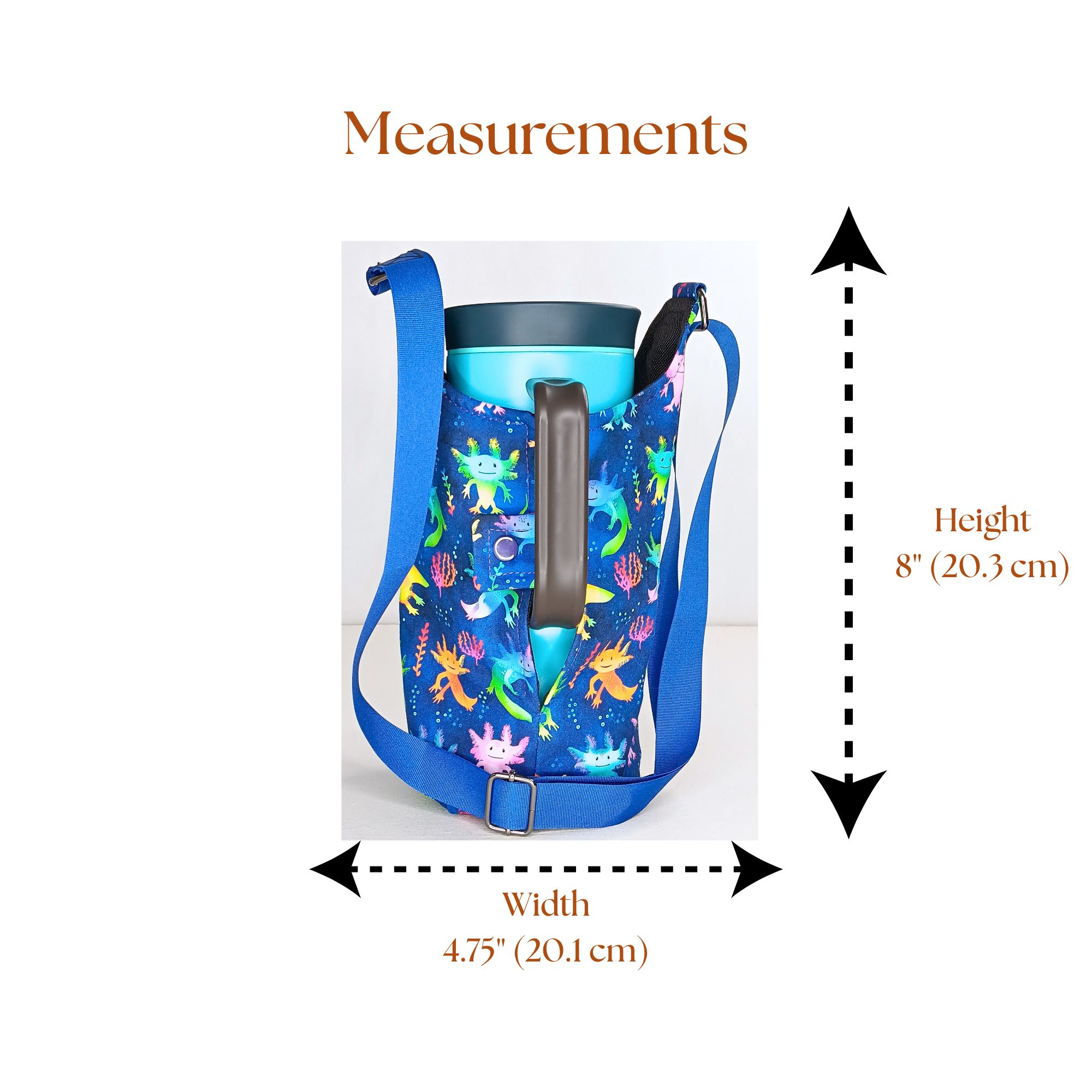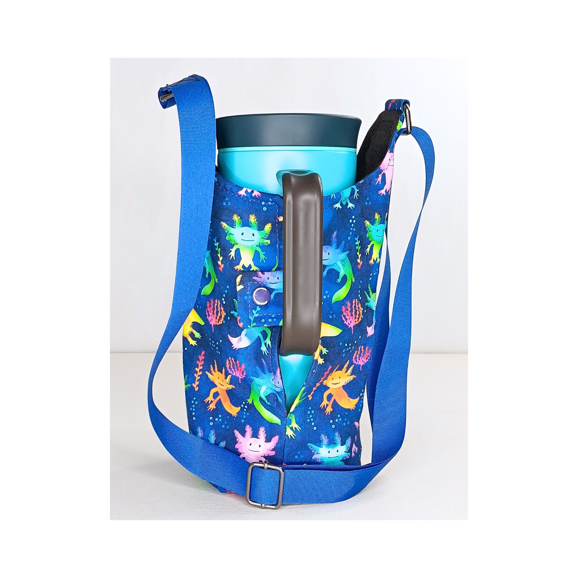 Axolotl Print Drink Sling for 20 oz, 40 ounce and 64 oz Stanley and Owala Handled Tumbler | Water Bottle Bag | Phone Carrier | Crossbody
