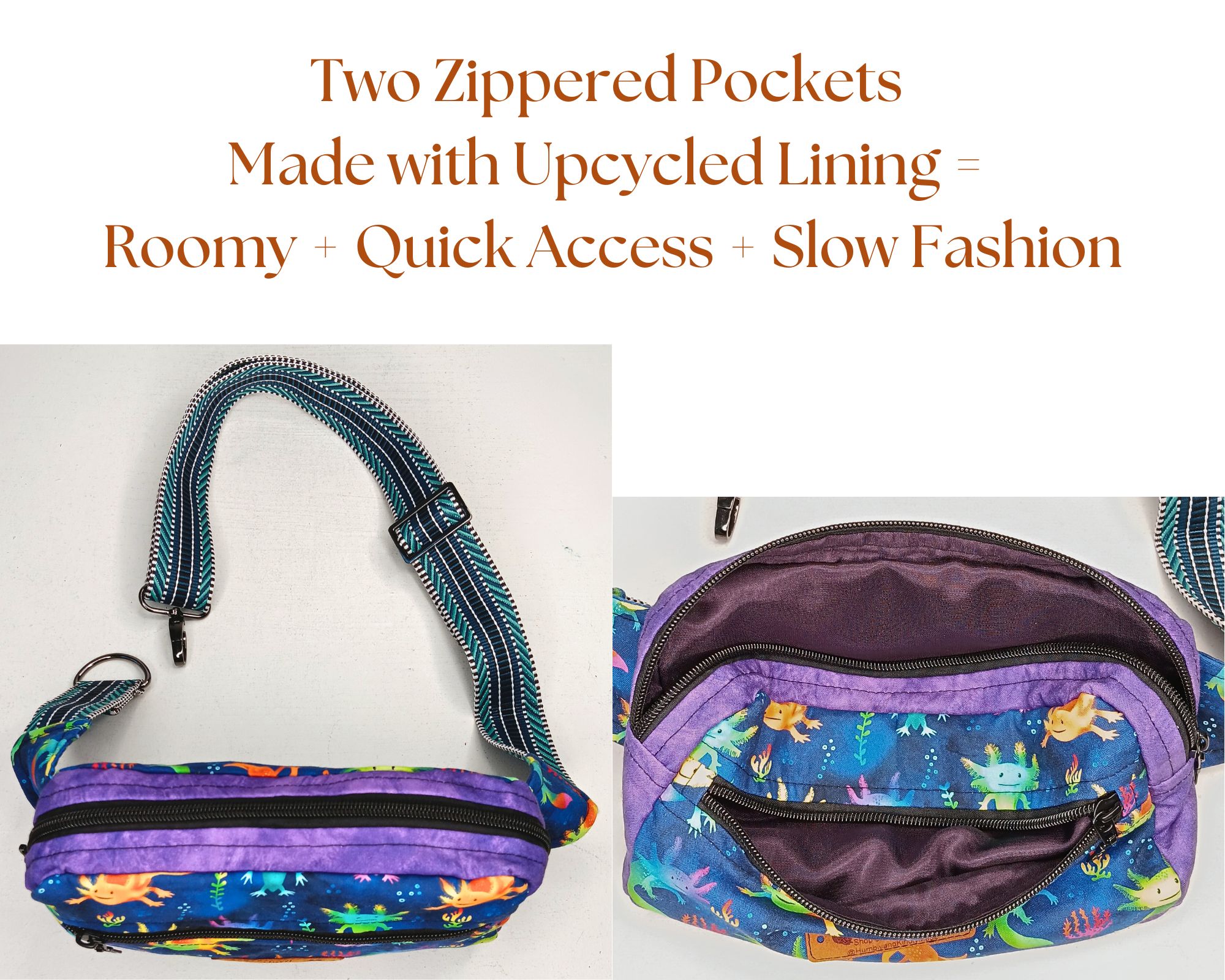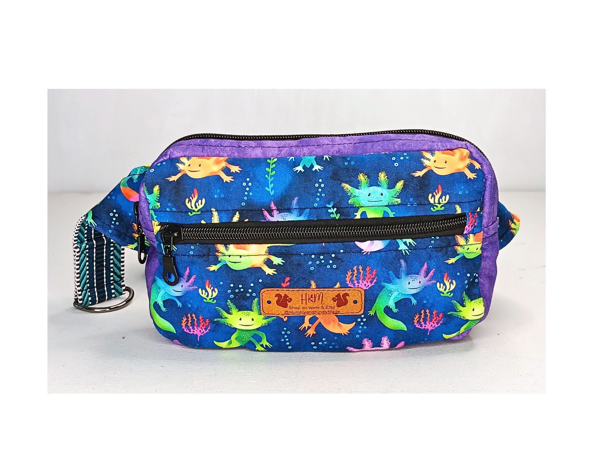 Axolotl Purple Fanny Pack | Compact Washable Waist Pouch | Lightweight Minimalist Belt Bag