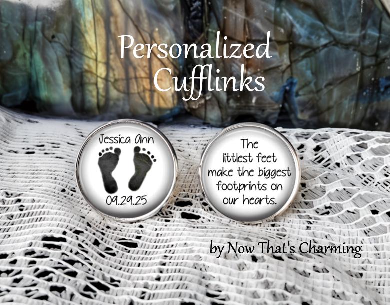 Baby footprints Cuff Links - With Photo - Gift for dad