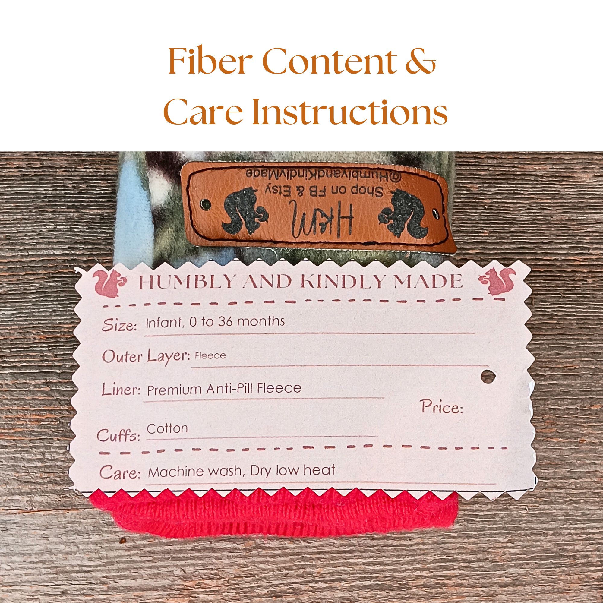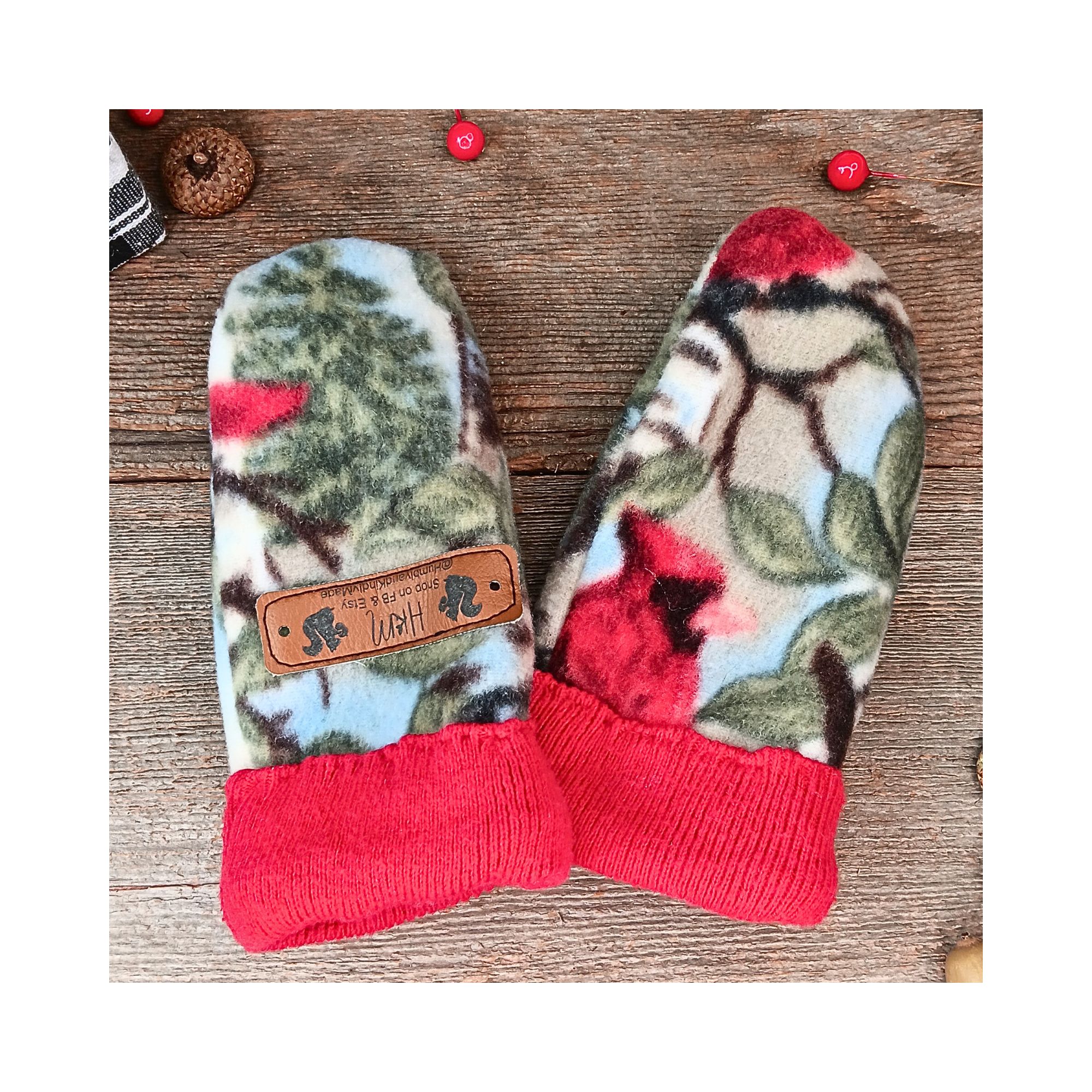 • Upcycled Fleece Mittens are handcrafted from recycled fleece pullovers and jackets. All fiber content is printed on the tag of each pair of non wool mittens and in the description box of each picture.