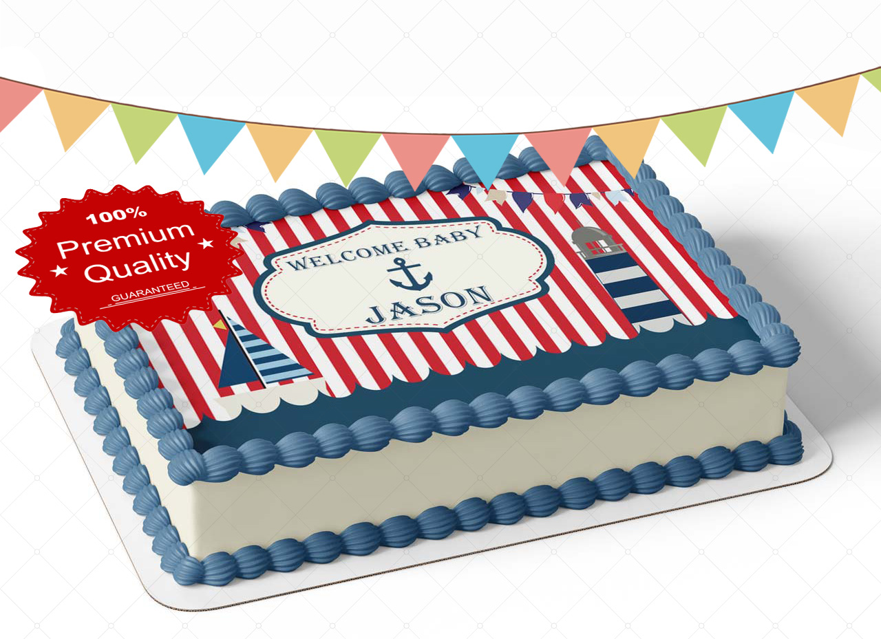 Baby Shower Beach Nautical Sailor BSN Edible Image Themed Edible Birthday Party Cake Topper Sheet Edible Sticker Decal