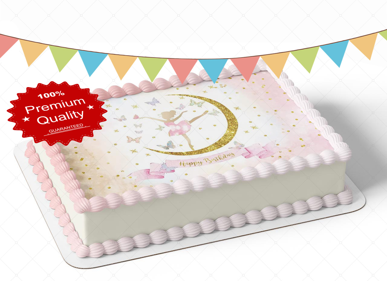 Ballet Dancer Pink Moon Butterflies Edible Image Themed Edible Birthday Party Cake Topper Sheet Edible Sticker Decal