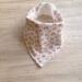 These adorable trendy little bandana bibs ae made with 100% cotton on the front and 100% cotton terrycloth on the back. They are very soft and super absorbent for all the little drools. Approx 17"X 8.5" from side to side and top to bottom. I used double Kam Snaps for adjustable sizing. These bibs can be machine washed and low heat also can be pressed if needed. Always wash baby items before using. Caregivers assumes all responsibility for use of any of these baby products.