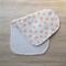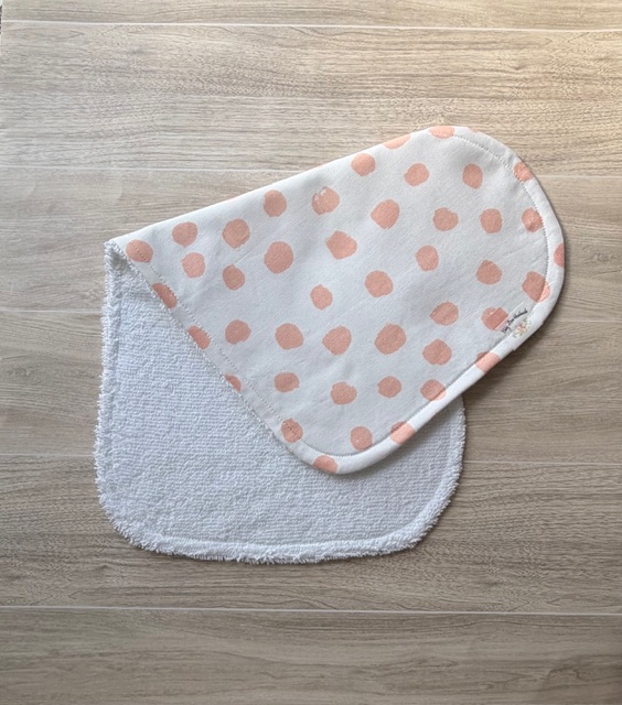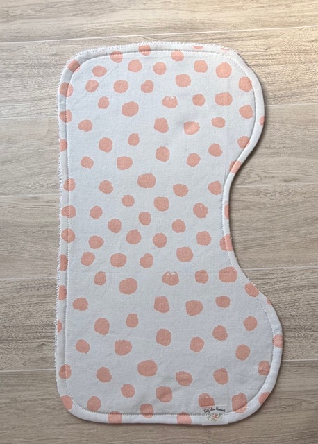 These burp cloths are a must have for your little ones. They are contoured for over the shoulder which makes it comfy for mom and baby. They are approx 16"X 9" and the front is 100% cotton and the back is 100% cotton terrycloth. These burp cloths are a really great help for moms. Caregivers assumes all responsibility for use of any Baby Love Finds Items.