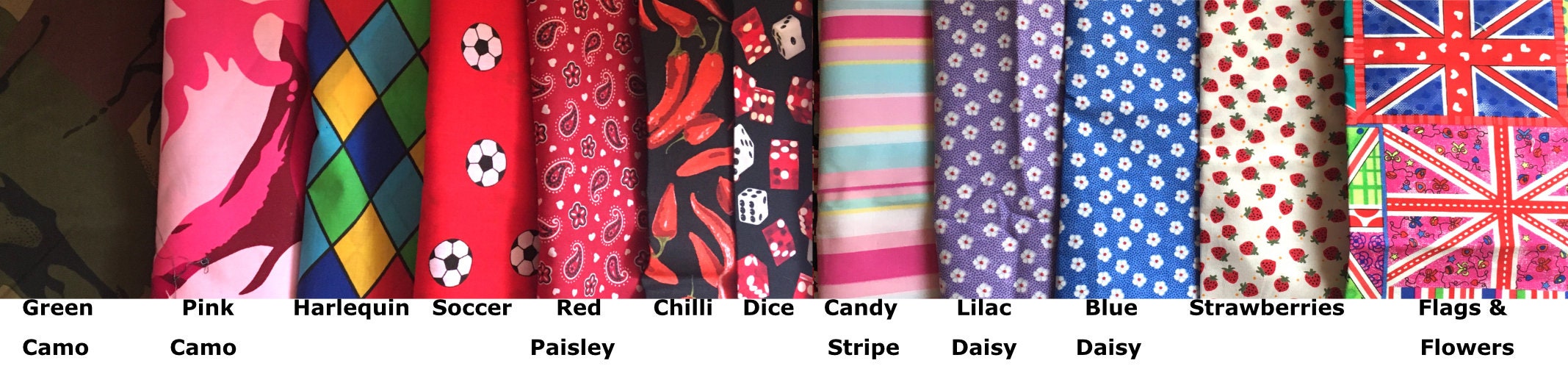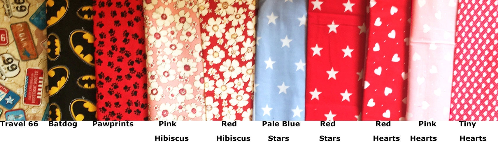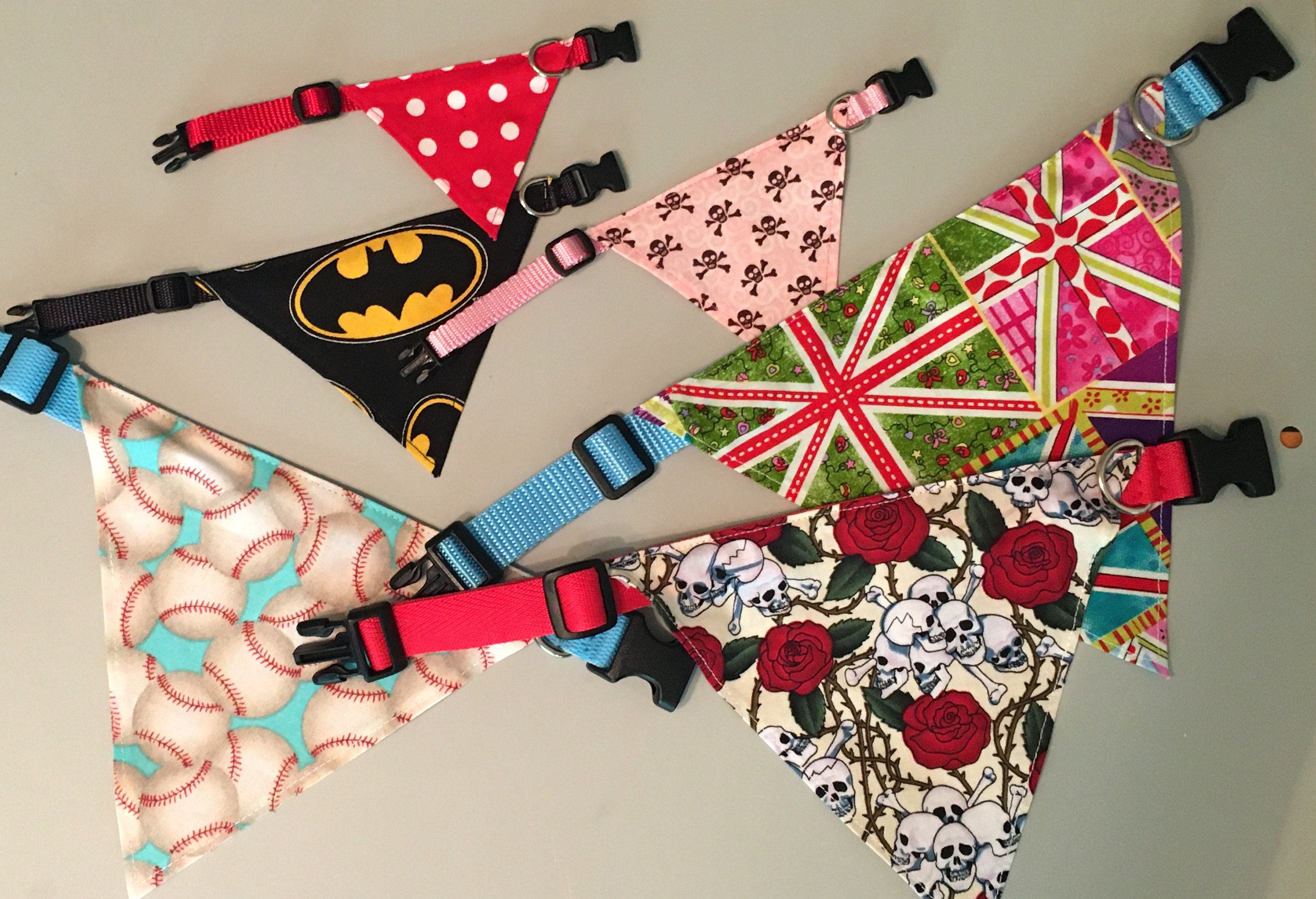 Lots of designs to choose from - see the 2nd and 3rd photos for fabric choices. (You will get a random portion of the pattern, according to the size). I have made bandanas and collars for Chihuahuas to Newfoundlands - so no dog is too big or too small!