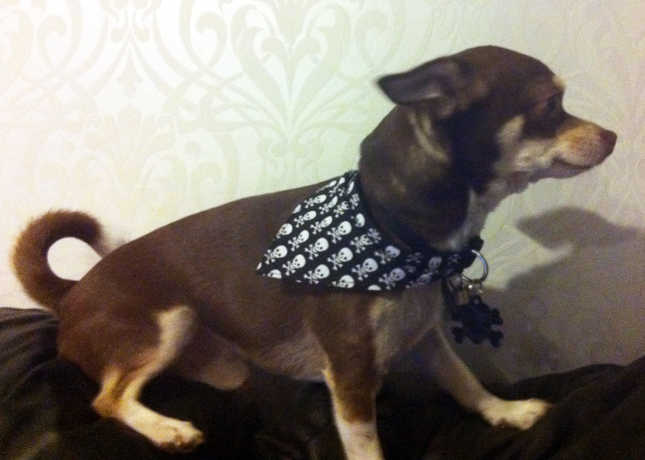Made to measure Bandana Dog Collar: Fabric bandana on a matching sturdy webbing collar with curved quick release buckles and a welded D ring.
