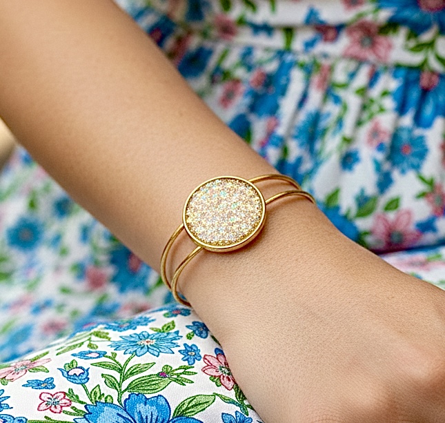• Material: Gold-plated alloy, Resin, Iridescent Opal glitter flakes